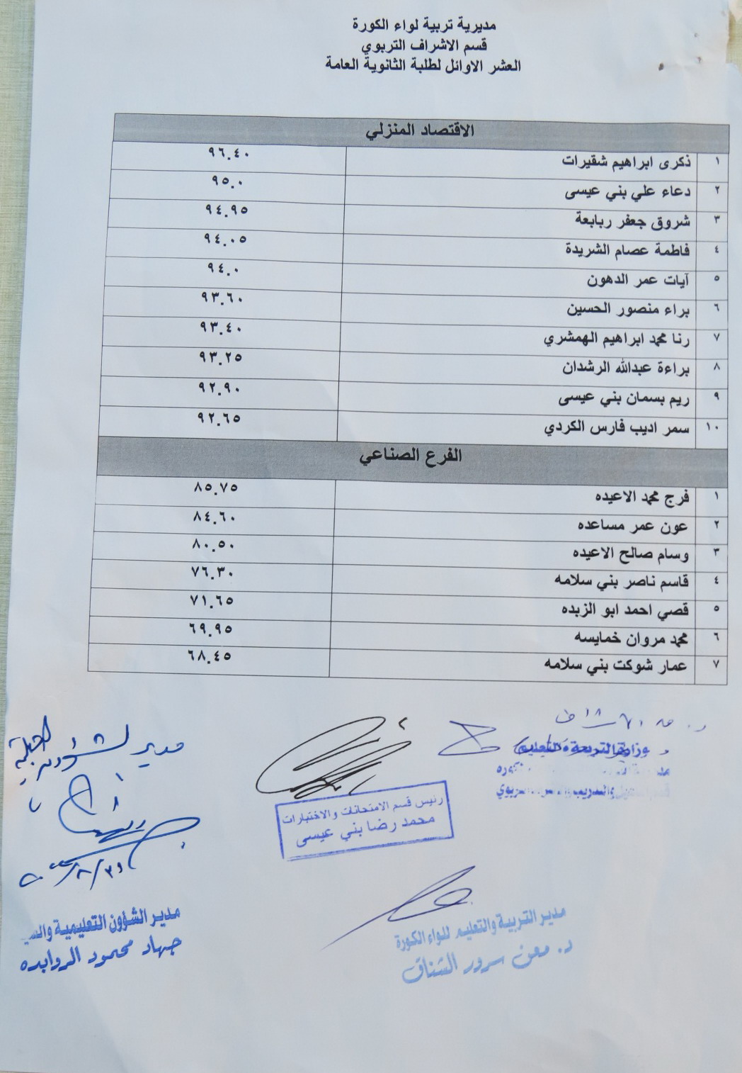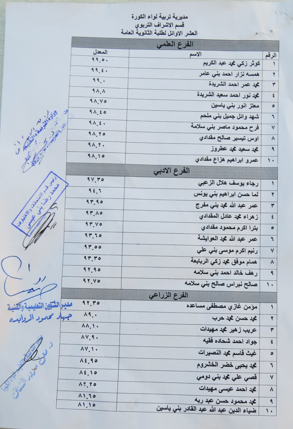 يَتَقَدَّم عُطوفة مُدير التربيةِ والتعليمِ للواء الكورة الدكتور معن الشناق، بِاِسْمه، ونِيَابَةً عن الأسرةُ التَّربويَّة في مديريةِ التربيةِ والتعليمِ للواء الكورة، بأسمى آيات التهنئة والتبريك لِطَلَبَةِ الثَّانَوِيَّةِ الْعَامَّةِ النِّظَامِيِّينَ الْعُشْرَةَ الْأوَائِلَ فِي الْفُرُوعِ؛ ؛(الفرع العلمي، الفرع الأدبي، الفرع الزراعي، الاقتصاد المنزلي، الفرع الصناعي) على مستوى المديرية لعام 2022، فهنيئًا لذويكم نجاحكم، وحقَّ لهم أن يفخروا بكم، وقد كان لهم دورٌ كبيرٌ في دعمكم ومساندتكم، والشُّكرُ الموصول لمُعلِّميكم الذين ما بخلوا يومًا في عطائهم لكي تُحقِّقوا أهدافكُم وطموحاتكُم التي تصبون إليها.