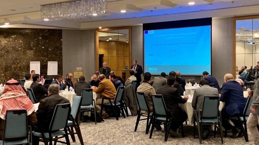 ضمن أنشطة مشروع الدعم الفني لتحسين جودة التعليم العام والتعليم والتدريب المهني والتقني الممول من الاتحاد الأوروبي، تم عقد ورشتي عمل لبناء قدرات مجموعات العمل في بناء معايير التنمية المهنية في 14 و 19 كانون أول 2022، تلاها عقد ثلاث ورشات عمل لإنتاج معايير التنمية المهنية لمعلم التعليم المهني في 16 و 19 و 20 شباط 2023، حيث قام فريق متخصص من رؤساء أقسام ومشرفين ومعلمين يمثلون 15 تخصصاً مهنياً من إدارة التعليم المهني بمساعدة من فريق متخصص من إدارة الإشراف والتدريب التربوي وإدارة المناهج والكتب المدرسية من خلال مجموعات عمل تخللها جلسات نقاشية واقتراحات تحسينية بإنتاج مسودة معايير التنمية المهنية التخصصية والمشتركة لمعلم التعليم المهني. وسيتم مراجعة وتحكيم مسودة المعايير التي تم إنتاجها ثم اعتمادها لتصبح المرجع الرئيسي في إعداد برامج التنمية المهنية لمعلمي التعليم المهني ونظام المتابعة والتقييم.
